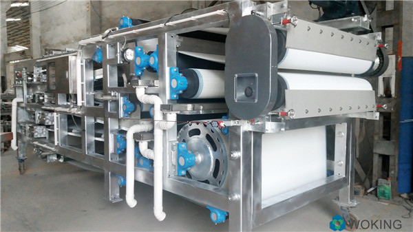 機(jī)制砂廢水處理 隨著國(guó)內(nèi)基礎(chǔ)設(shè)施建設(shè)不斷增加,砂石的需求也越來越旺盛,全國(guó)各地礦砂開采的制砂廠越來越多。由于機(jī)制砂廢水量大,廢水中固含量高、固體顆粒粒度分布范圍廣,周邊環(huán)境泥水四濺,還有部份廢水直接進(jìn)入河道,帶來極大的環(huán)境隱患。 由于一般洗砂場(chǎng)都存在場(chǎng)地限制,沉淀池面積有限,礦砂生產(chǎn)過程中所產(chǎn)生的泥漿污泥沒有得到及時(shí)的處理,以至于沉淀池?zé)o法容納多余的泥漿水,跟不上生產(chǎn)進(jìn)度。 因此沙污凈環(huán)保推出一款可連續(xù)工作的制砂污泥脫水機(jī),設(shè)備可24小時(shí)連續(xù)運(yùn)行,無需人工,不怕刮風(fēng)下雨,出來的清水可回用洗沙機(jī)洗砂,真正做到零排放,無污染。 通過輸送帶把已經(jīng)處理好的泥餅堆積到一起,便于運(yùn)輸.泥餅排出干堆高達(dá)3到4米,人可以走上去,處理量巨大,泥漿脫水設(shè)備用于處理洗沙場(chǎng)污泥處理實(shí)現(xiàn)泥水分離,泥漿進(jìn)入機(jī)器后出來的是泥餅和清水,清水可排放或循回使用,泥餅手抓不出水,打包運(yùn)輸不滴水。